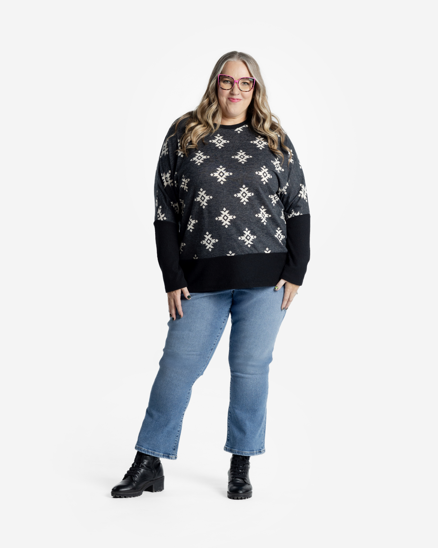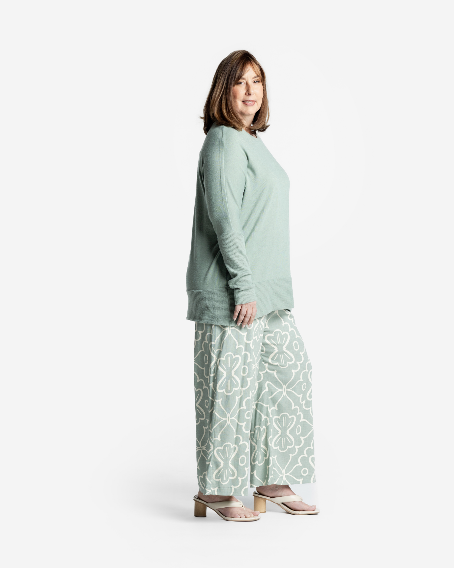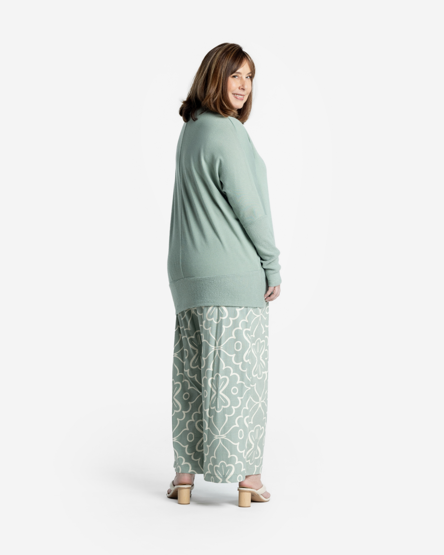 Vicki Raw Edge V-Neck Long Sleeve Top
