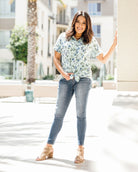 The Details: The Ankle skinny distressed denim is fitted through the hip and thigh, tapering through the legs. Cut just short of the ankles and featuring a chewed up hem.