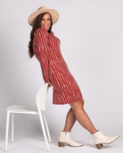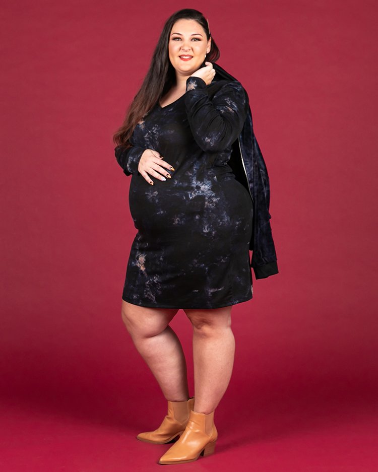 The Ava is a leg of mutton long sleeve dress with a v-neck and cuffs. She has a semi-fitted silhouette at knee length. Ava comes in MVS 95/5 Poly/Span fabric.