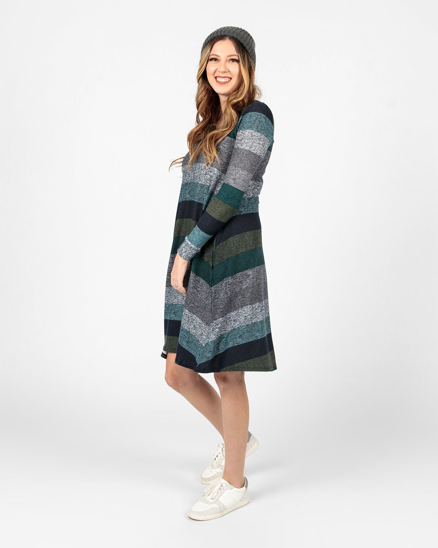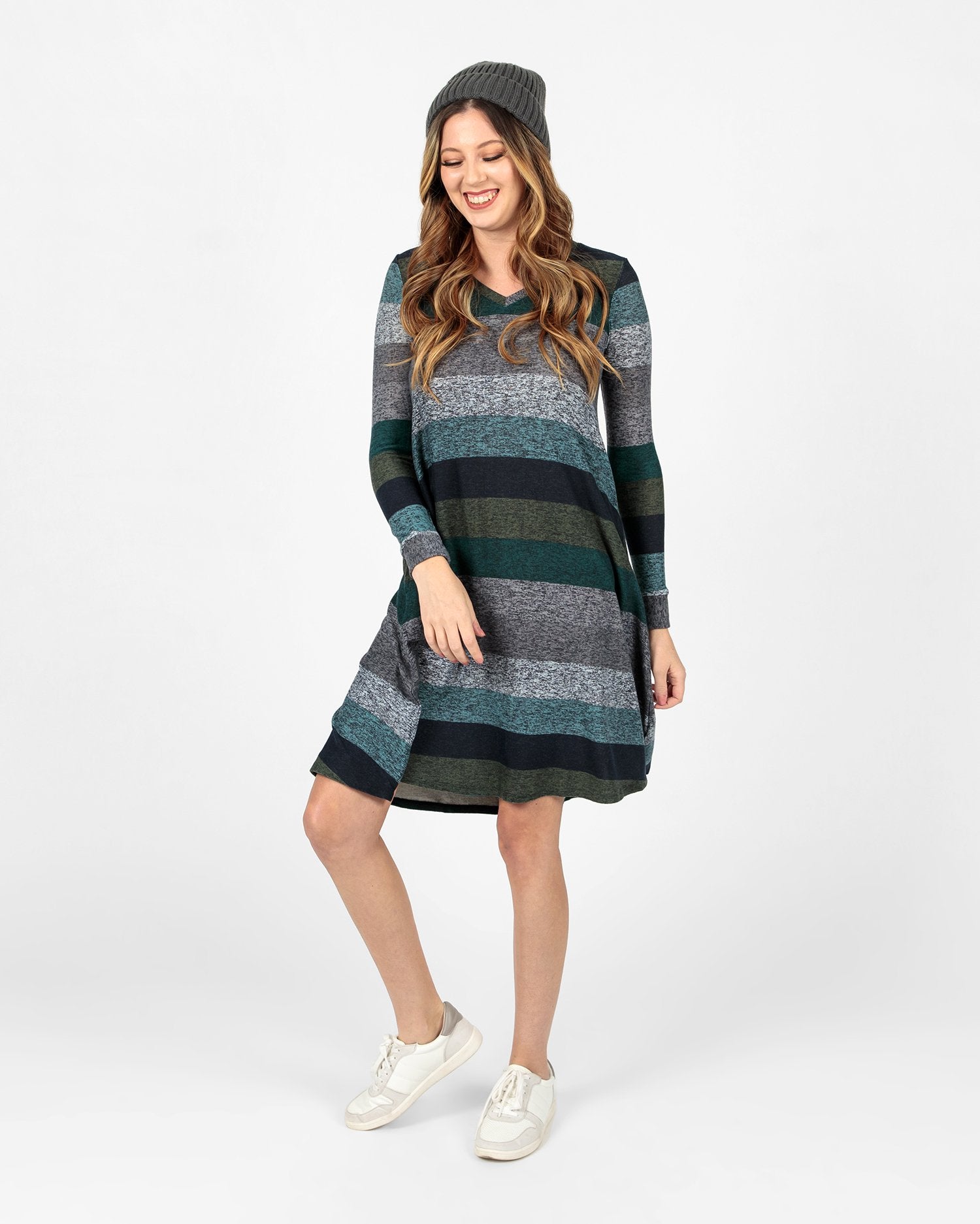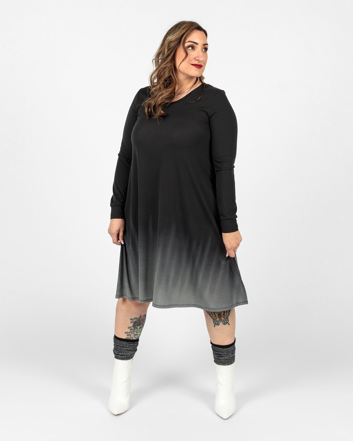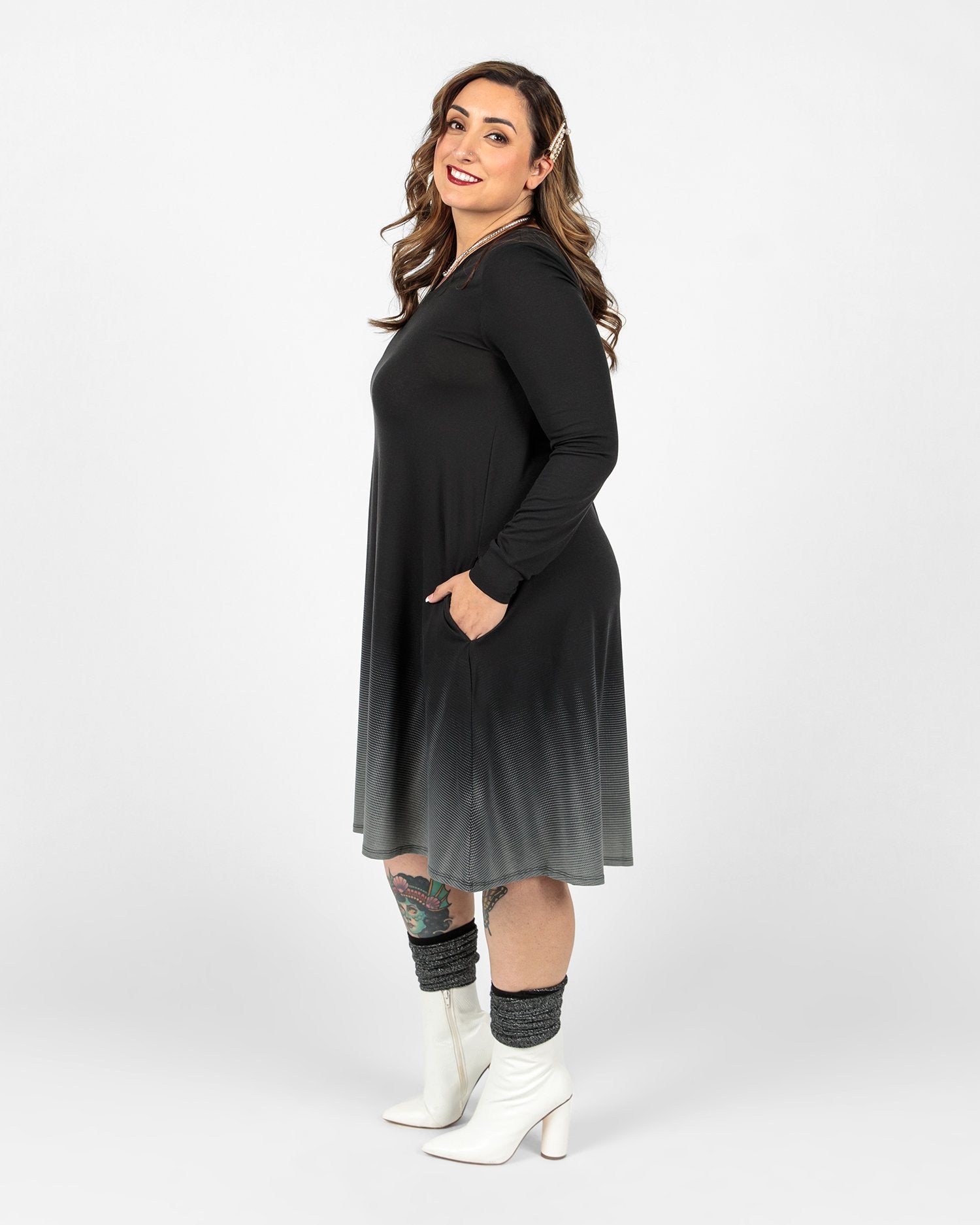 The Details: The Emily is a long-sleeved swing dress with a v-neckline and hidden pockets. The Emily comes in MVS fabric.