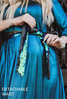 Alright, darling, today’s the big day. Three events, three different locations, and you’re at the helm of them all! You need something that says “I’m the world’s greatest party planner, but I’m also here to have some fun!” And the chances of any wardrobe changes are probably slim. So you’re going to need the Eve dress! Truly unique—it’s her tie that separates her from the rest—giving her multiple looks and styles to change into on the fly. This means each event gets a different look; tied at the waist for a defined waistline or without for a relaxed and loose silhouette—or simply wear it as a necktie or hairpiece. She can do it all, just like you!