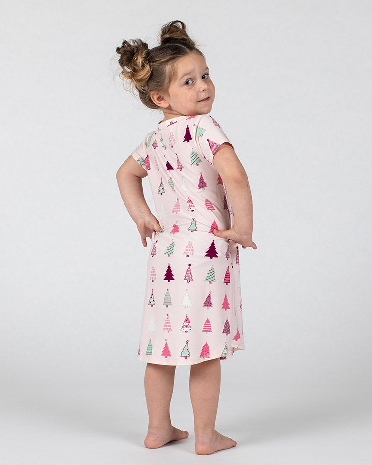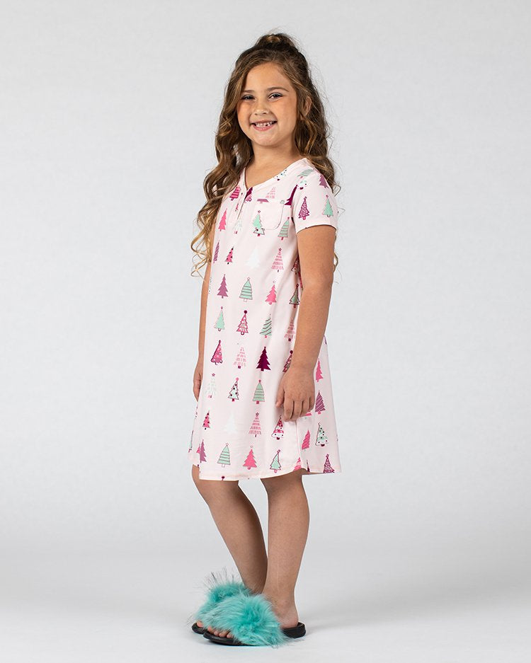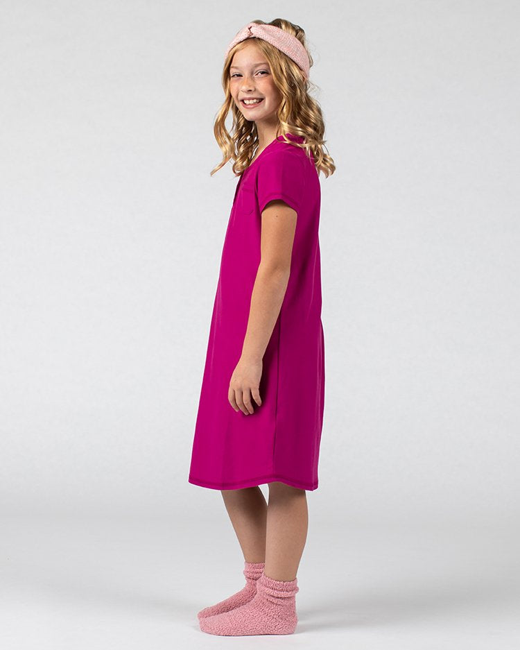 Your little girl will have sweet dreams in this super soft-knit nightgown. With a relaxed shape at the waist and a soft shirttail hem, this nighttime dress is sure to be her favorite. The Y-neck button front henley adds a touch of flair along with a mini chest pocket for added fun.