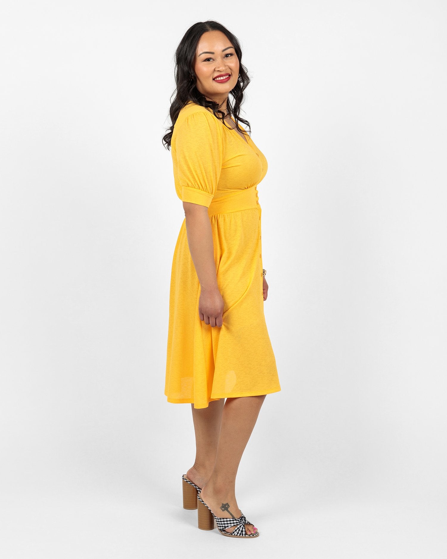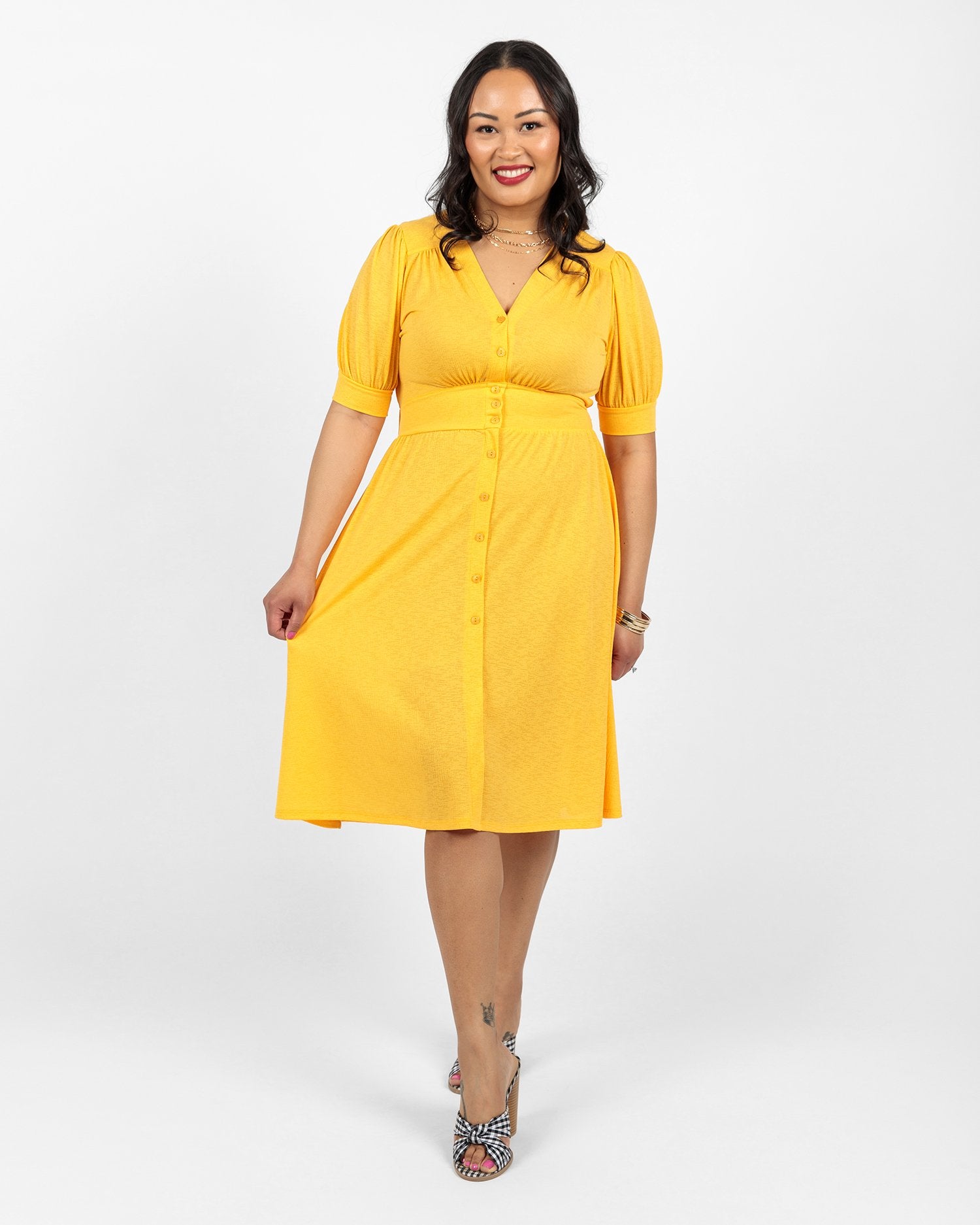 Introducing the oh-so-cute Skyler Midi Button Front Dress! Crafted from soft and airy Gauze Knit material, this dress is perfect for any fashion-loving gal. With playful puff sleeves, a twirl-worthy midi length, elegant button-front detailing, and side seam pockets, the Skyler dress will turn heads wherever you go. The front shoulder and back yoke are designed with darling shirring, adding an extra touch of whimsy, while the non-functional buttons on the waistband and bottom placket are simply too cute for words!