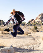 Berlin is a relaxed fit jacket that comes in 3 fabrics: 100% Polyester Sherpa, 100% Polyester 8 Wale Corduroy, and 100% Polyester Flannel. It's cut with a drop shoulder, a relaxed silhouette, and a back yoke with a box pleat. It features a color, button front, and a front yoke with a button pocket and flap, faux pockets. It also has pockets hidden in the classic princess seams, a 2-inch bottom band, trims with a 4 hole torturous button, and a sleeve cuff with a pleat and button.