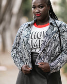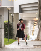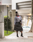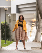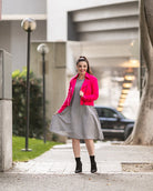 The Presley is a moto-style jacket with an offset angled zipper, armhole princess seams, and two snap caps at the collar. She also comes with front welt pockets, sleeve cuffs with snaps caps, and a band at the bottom hem!