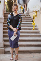 It comes in Liverpool, burnout velvet, foil fabrics, faux fur, payettes, multi-tone sequins, velvet, and lace.