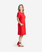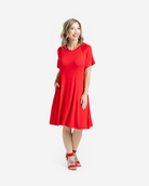 The Celia Raglan A-line Dress is the perfect blend of comfort and whimsy. With its easy raglan short sleeves and breezy A-line shape, it’s made for carefree days and happy moments. Side seam pockets - finished with a touch of exposed stitching - add a playful detail, while the center back seam keeps the fit flattering. Falling just at the knee, Celia is that sweet, throw-on-and-go dress you’ll love for picnics, strolls, or simply feeling pretty.