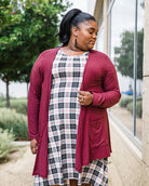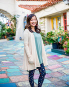 The Details: The Caroline is an A-line cardigan that’s mid-thigh length, with an even hemline. Did we mention she has pockets?!