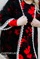 The Chloe is a Bohemian style overlay with a custom-laced center front, sleeve, and hem. The Chloe comes in chiffon with custom embroidered mesh and features relaxed sleeves.