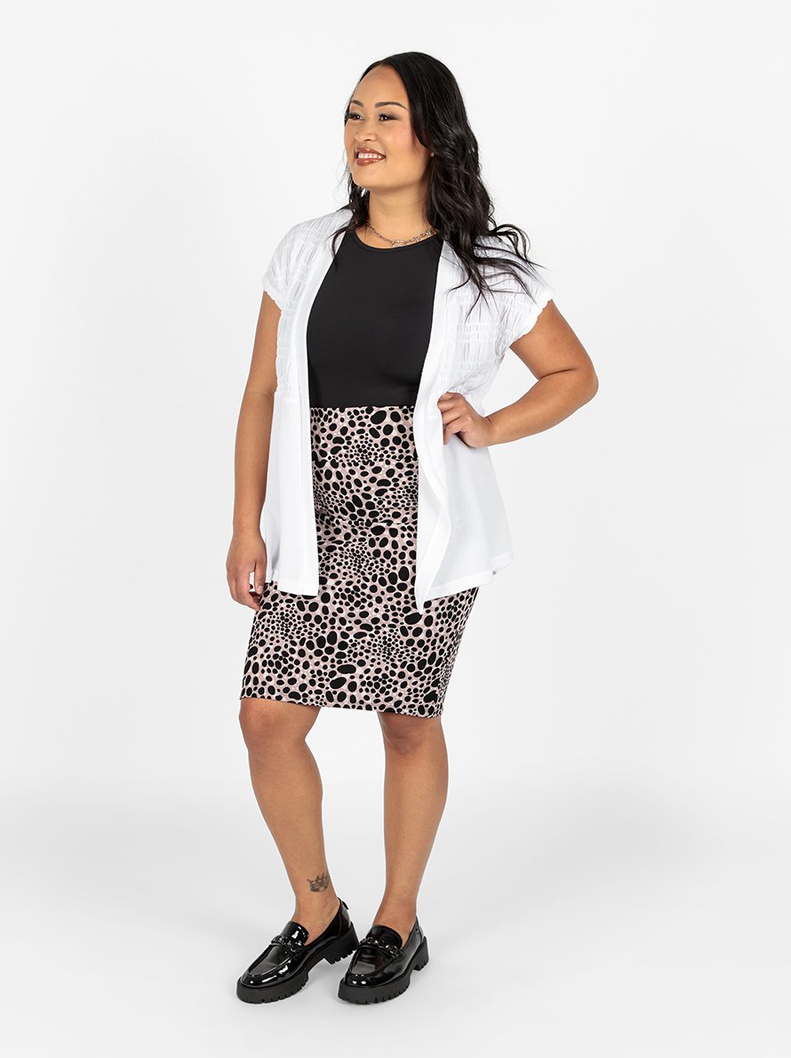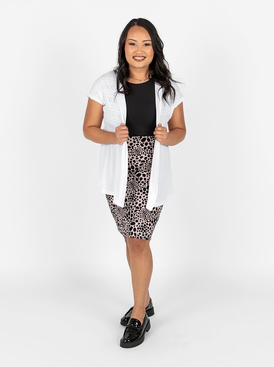 Meet your new BFF cardigan! The Kaylin is a short-sleeve smocked cardigan featuring an open front with smocked sleeves and yoke. She is designed to be the perfect transitional overlay for casual and formal wear. It’s clear to see why this smocking trend is here to stay! Of course, her easy silhouette and super-soft Brushed Hacci fabric make her all the more perf for an unmatched look and feel.