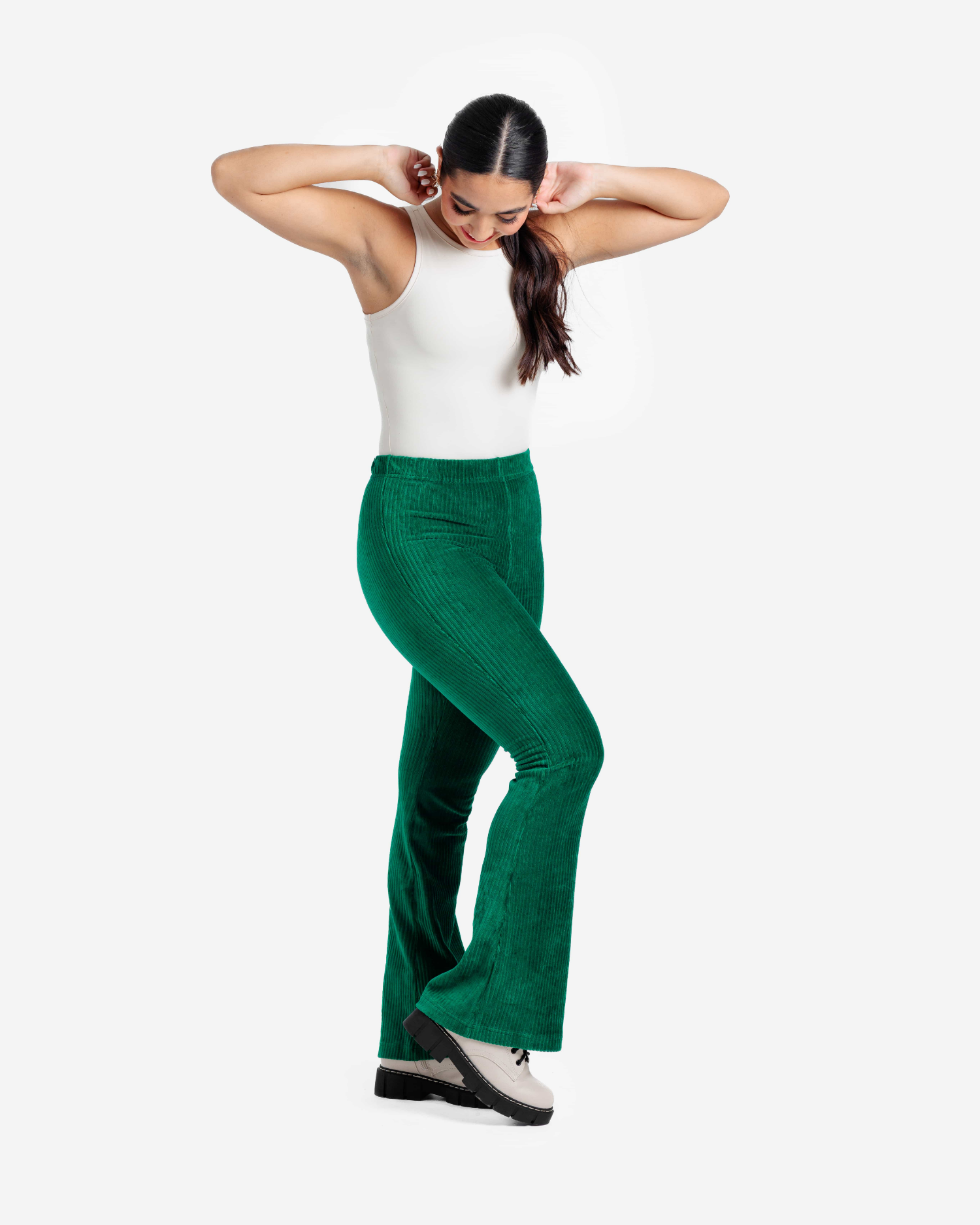 Introducing the Kylie Pull On Flare Pant - that redefines versatility. The comfortable elastic waistband and fitted silhouette bring a casual yet elegant vibe. Kylie is available in neutral solids, making her a perfect everyday pant. Pair with an Oversized T, Sweater, Cardigan … you get the picture.