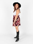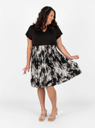 The Sophia has a paper bag ruffled smocked waistband, with a flared silhouette, and a seam at the center back. She’s knee-length, with a true-to-size fit.
