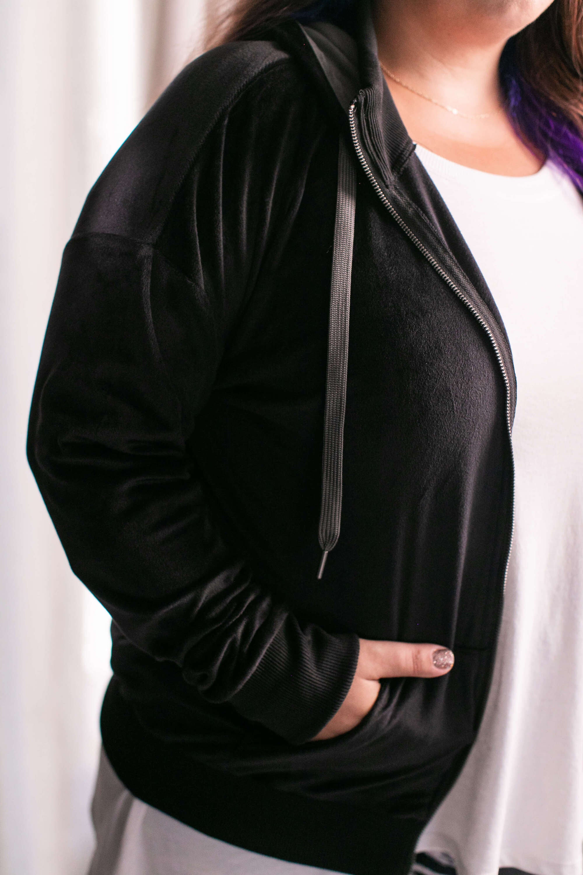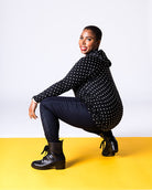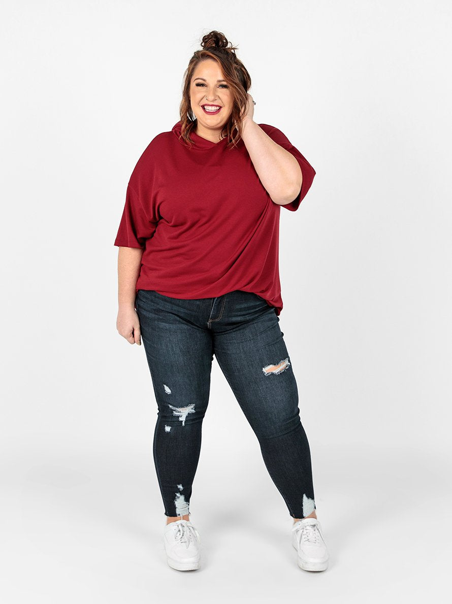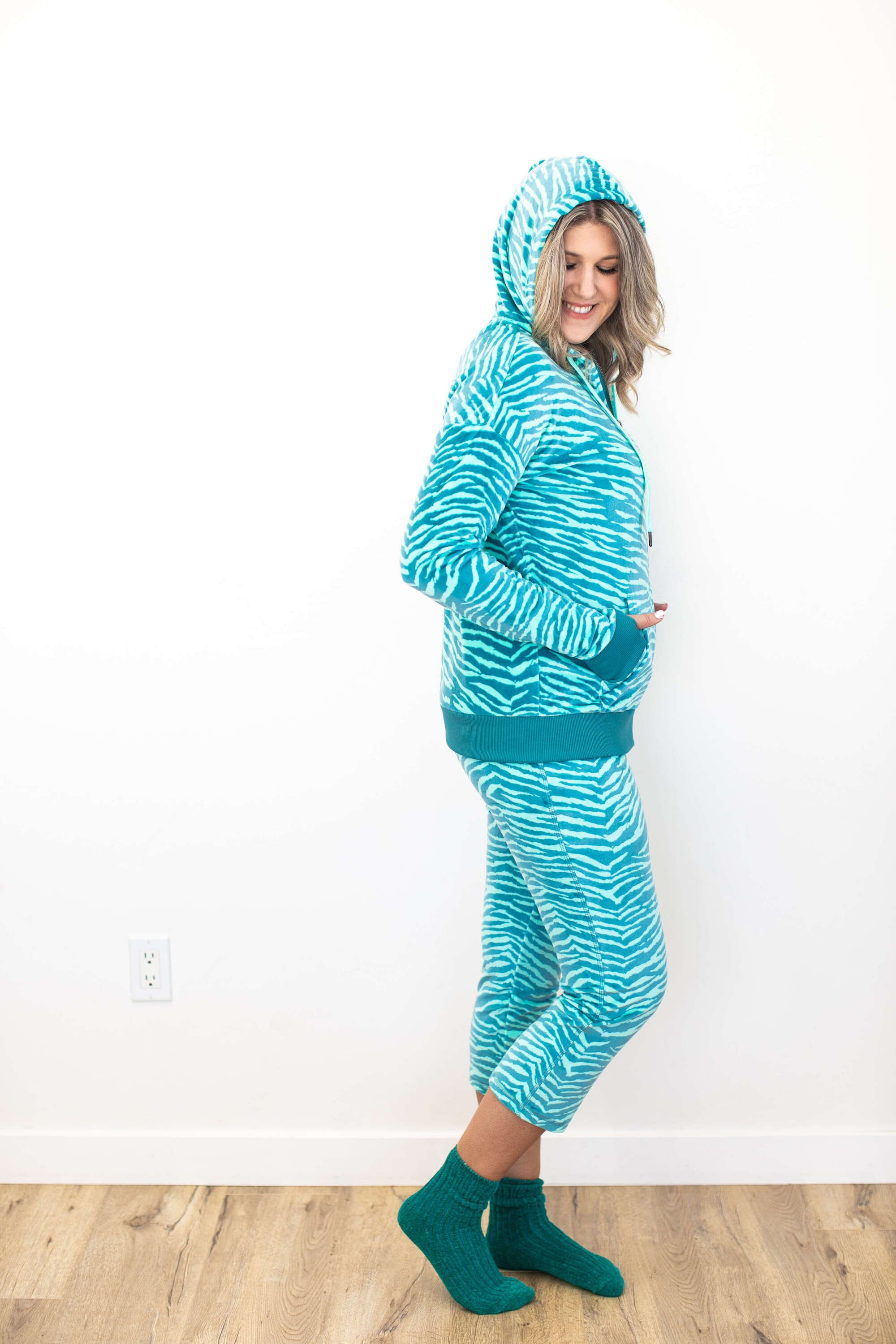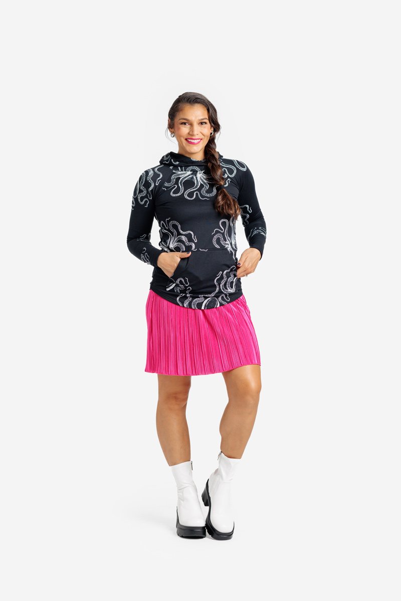 The Amber is a lightweight hoodie that is perfect for layering. It features raglan sleeves, a criss-cross neckline and slight high-low hemline. The Amber also boasts special touches like a lined hood, front pouch pocket and extended cuffs in contrasting and matching prints and colors.