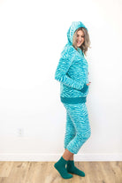 The Bethany is a true-to-size zip-front hoodie, with a mock neck collar, drop shoulders, and a kanga pocket. She has a hood with contrast lining, as well as a functioning wide contrast drawcord with metal cord tips. She also has rib cuffs with a thumb hole opening and a rib bottom band. She comes in Stretch Velour, Lounge Jersey, and 2x2 Rib fabric. There is an antique silver metal zipper pull and metal grommets at the hood. She also has inside back neck twill tape.