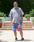This oversized short-sleeved hoodie is the perfect go-to whether you're chilling, lounging, or grabbing some lunch with friends. Our Frankie Short-Sleeved Hoodie is available in a variety of solids and patriotic prints that make it just right for layering or wearing alone, with raw edges that you can tailor yourself to get the perfect fit. The oversized fit makes it perfect for all body types.