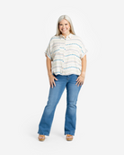A versatile essential for any occasion, the Amy Button-Up Top is back! Featuring a sophisticated collar neckline and Dolman sleeves with folded tacked cuffs, this top effortlessly transitions from office chic to evening elegance.
