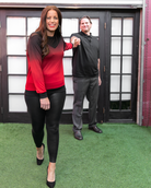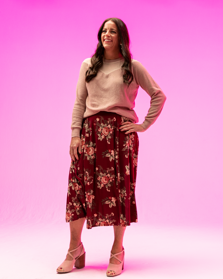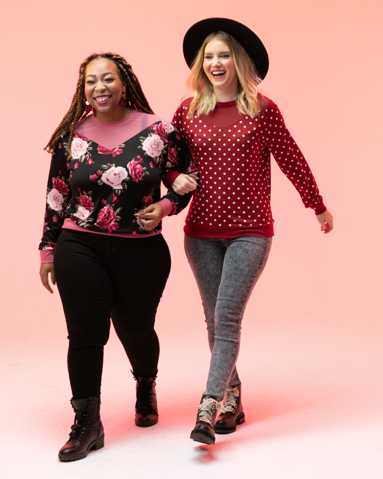 The Details: The Lizzy is a long sleeve mesh sweater top with a ribbed neck and bottom band, as well as the sleeve cuffs. She’s got a mesh yoke on both the front and back top and fits true-to-size.