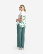 Introducing the Misty Knit Dolman Mixed Media Top - your key to seasonal versatility. Its round neckline and dolman sleeves with folded tacked cuffs exude casual sophistication, perfect for any occasion. Choose between the contrast print or solid woven back panel to suit your style. This top effortlessly transitions from crisp spring mornings to balmy summer evenings, making it a wardrobe essential!