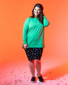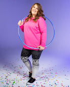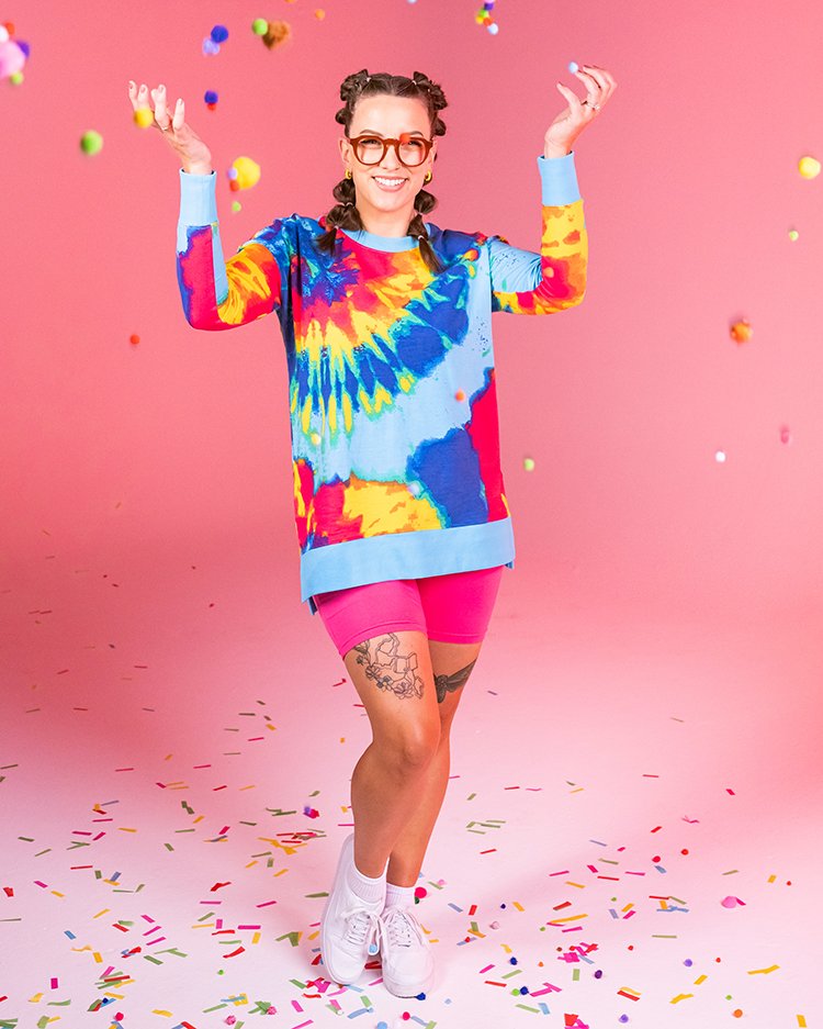 Her new length offers just the right amount of coverage to go with your unicorn leggings. One more thing. This time around, Hannah will be rocking solid prints so that your top and unicorn print leggings compliment each other to a magical perfection!