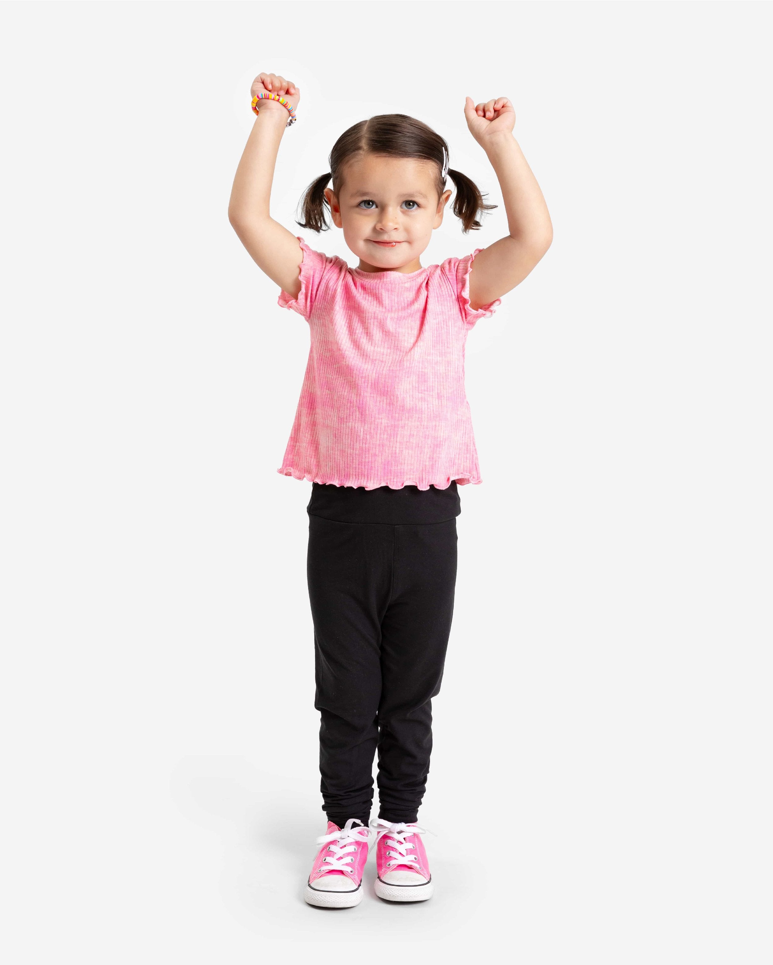Featuring seven “Back to School” inspired pieces - the Basic T, Kids Jax Jogger, Oliver Pullover Hoodie, Molly Double Ruffle Sleeve Dress, Blake Pullover Crew, Lacey Lettuce Hem T, and Leggings.