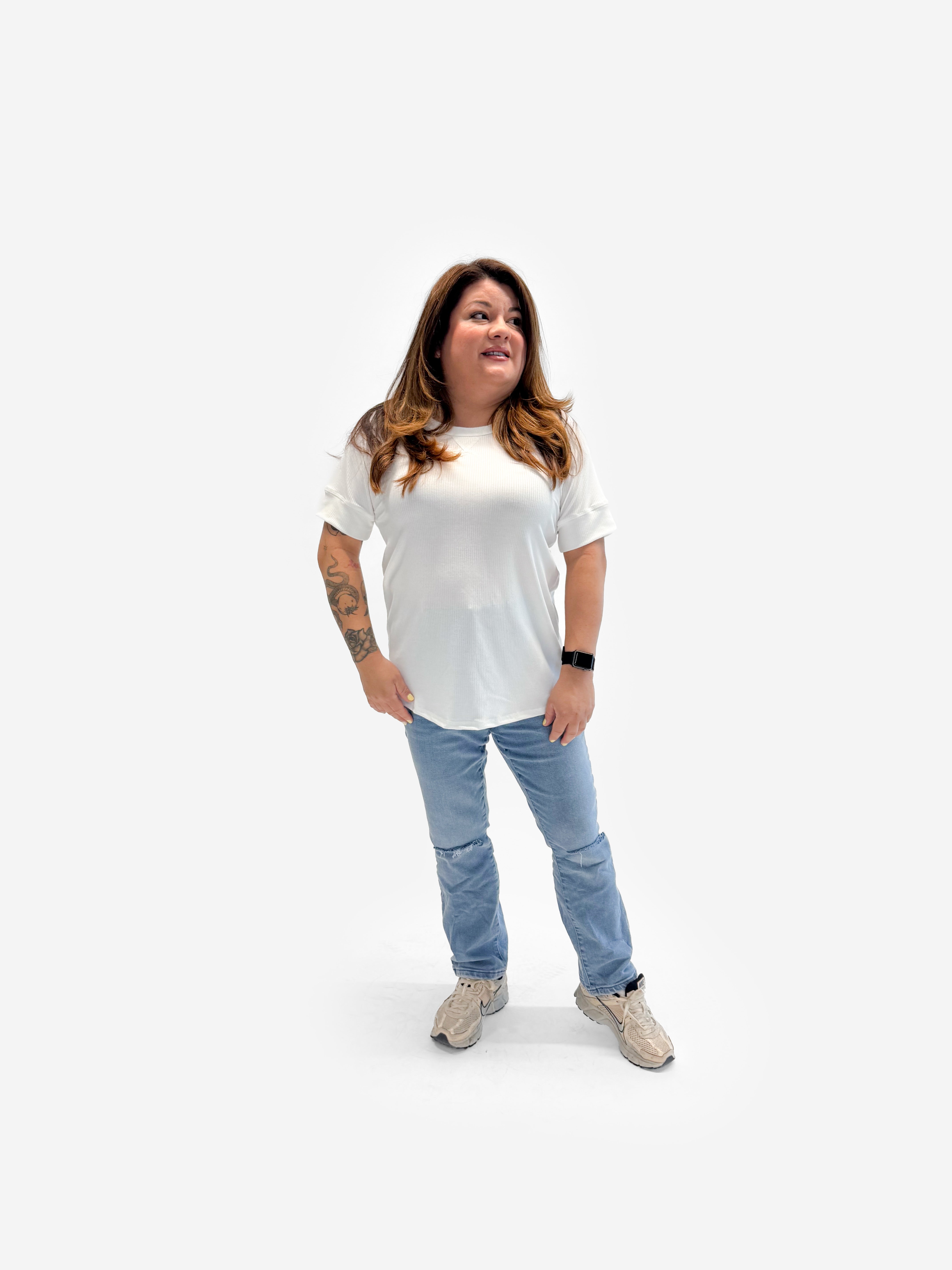 The Details: The Hailey is a raglan sleeve top that has a v-stitch design on the neckline and a high-low shirttail hem, with a decorative cover-stitching around the sleeves, neckline, bottom hem, and cuffs. She has a relaxed fit and comes in 2X2 RIB. 87/13 POLYESTER / SPANDEX. 185 GSM.