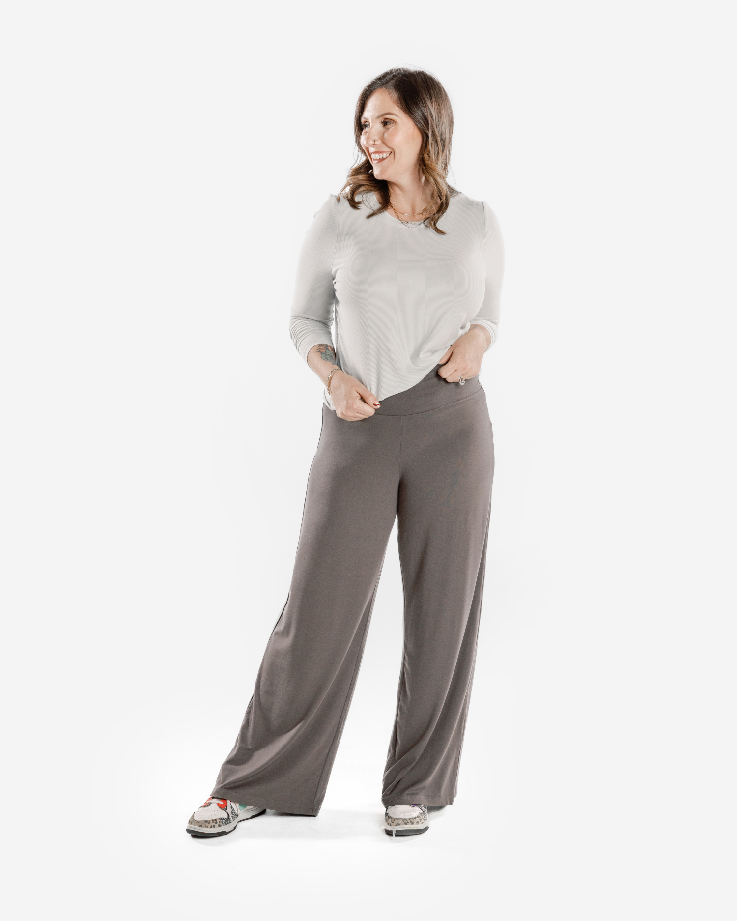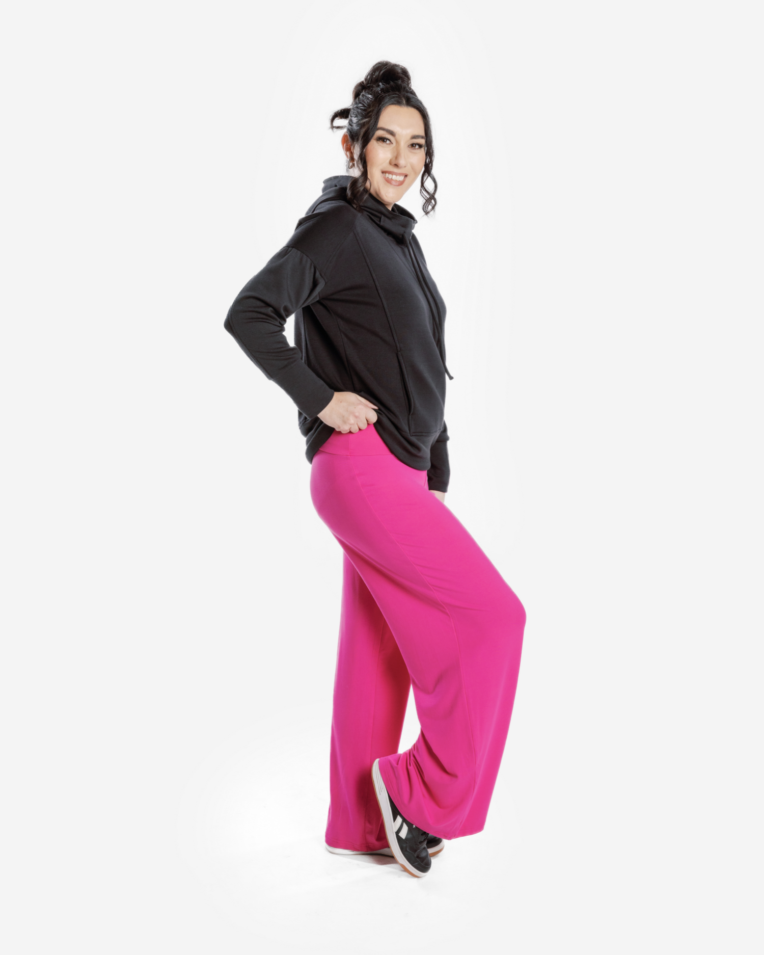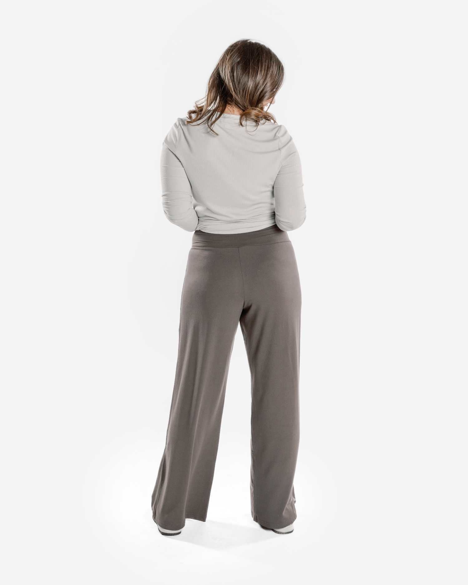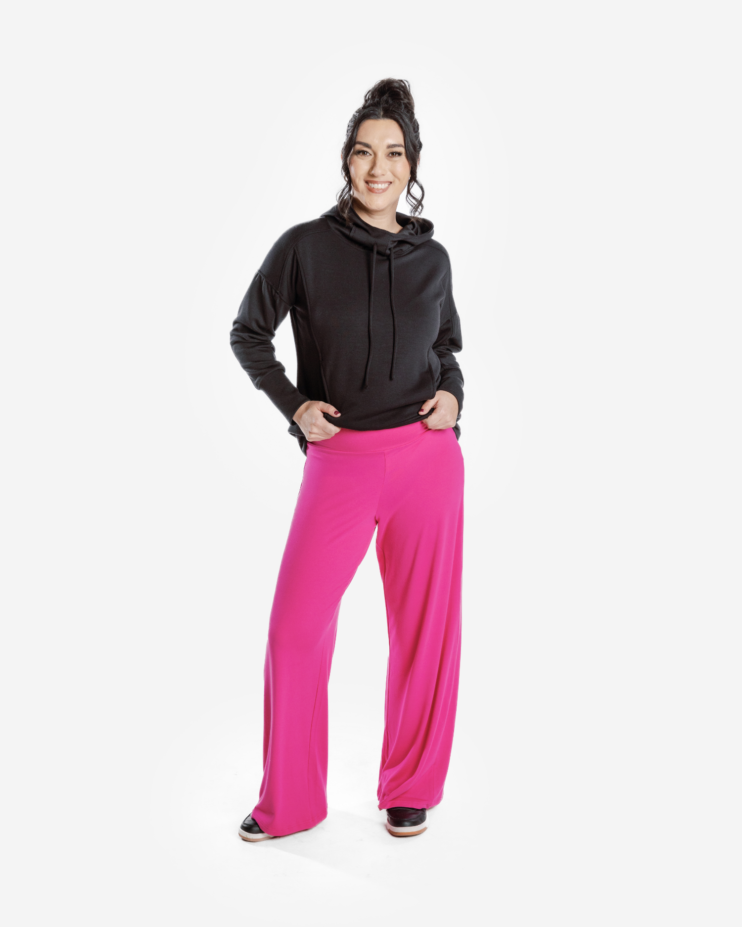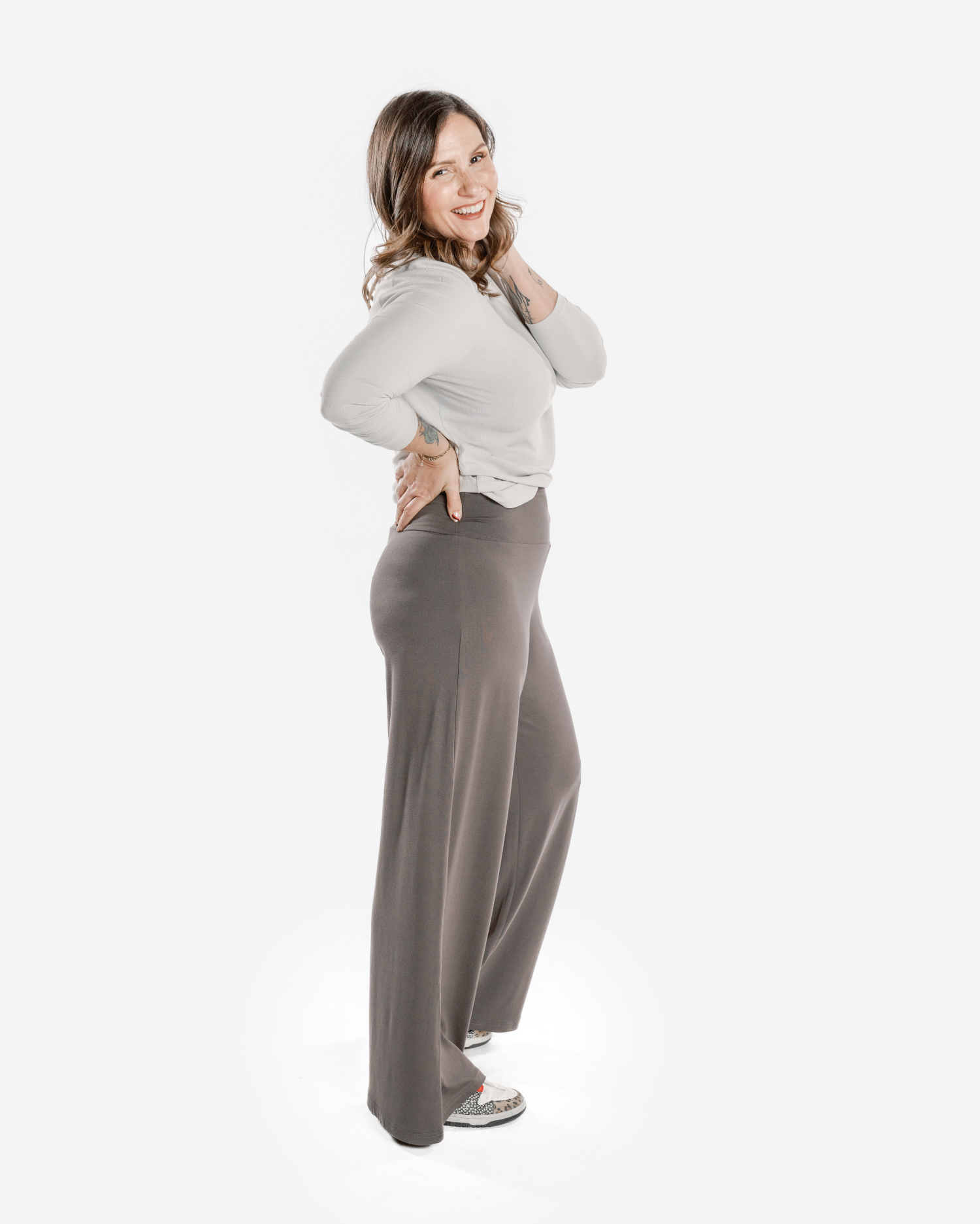 The Jax is a true-to-size single garment jogger sweatpant with 2 ½” rib cuff, a functioning wide drawcord with antique silver cord tips and silver metal grommets. She has slash front pockets and a 1 ½” inside rib elastic waistband. She comes in Stretch Velour and 2x2 Rib fabric.