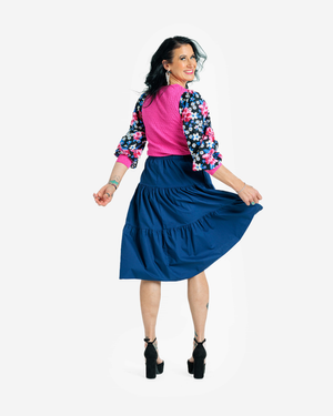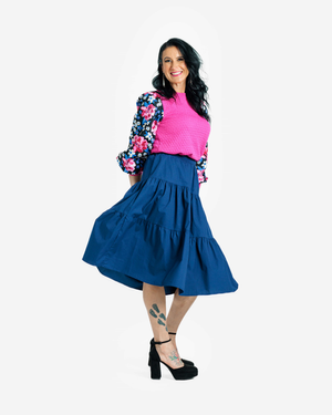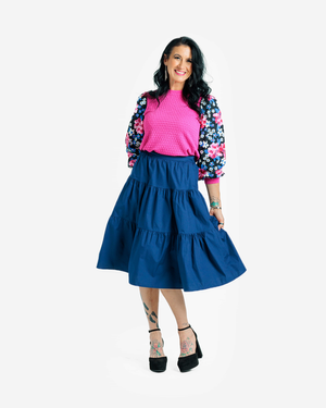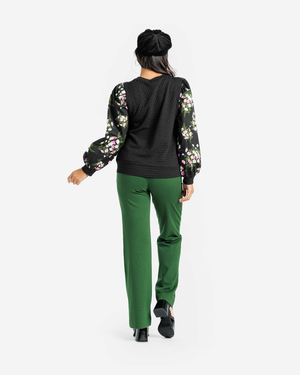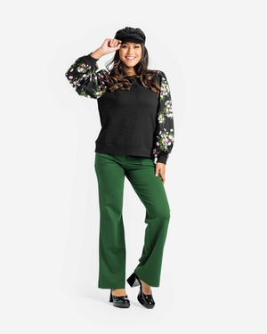 The Kimmy Mixed Media Long Sleeve is a stylish combination of textures and shapes. The contrast between the woven sleeves and the circle jacquard bodice creates a unique look, while the long sleeves' slightly puffed shape adds a playful touch. Kimmy is perfect for transitioning into spring and offers a fun and free-spirited style that's perfect for everyday wear.