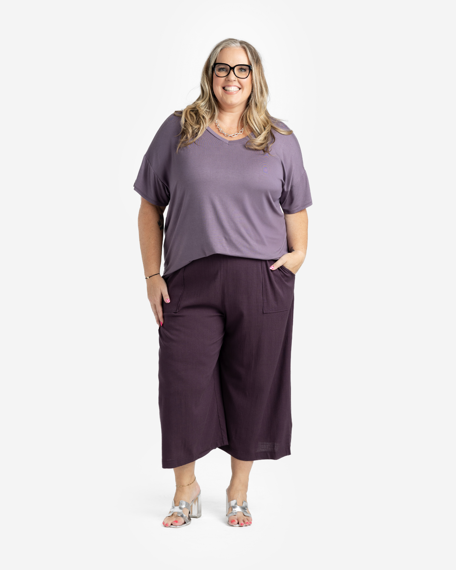 Easy, effortless, and oh-so-flattering—the Lisa V-Neck Top is your new everyday essential. Designed with a relaxed silhouette and drop shoulder short sleeves, she drapes beautifully for a laid-back yet put-together look. The V-neckline adds a touch of feminine charm, making it easy to dress up or keep casual.
