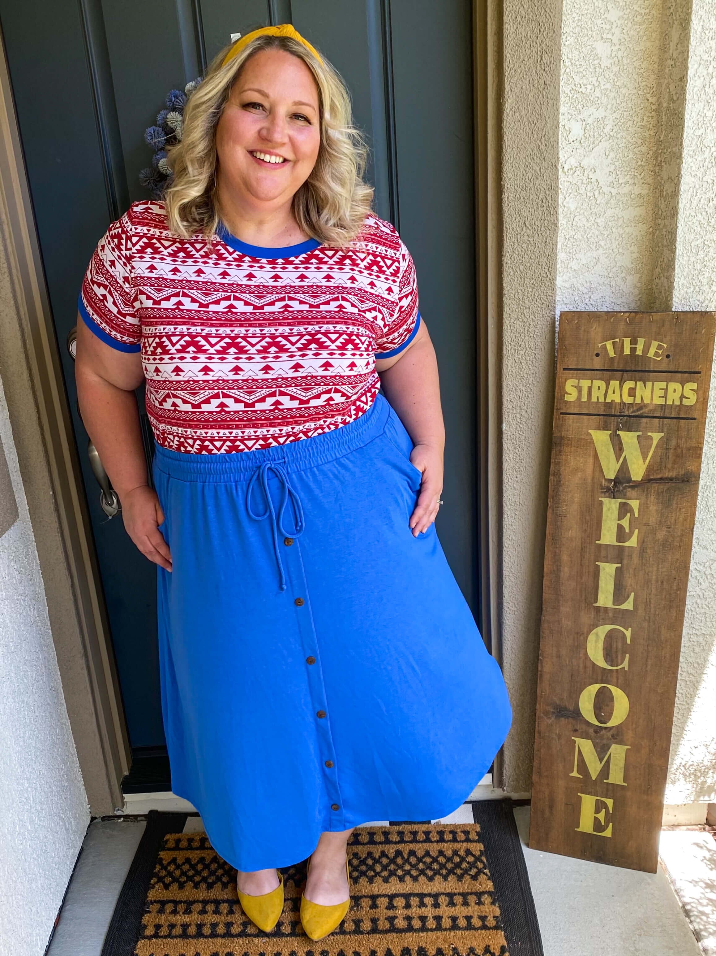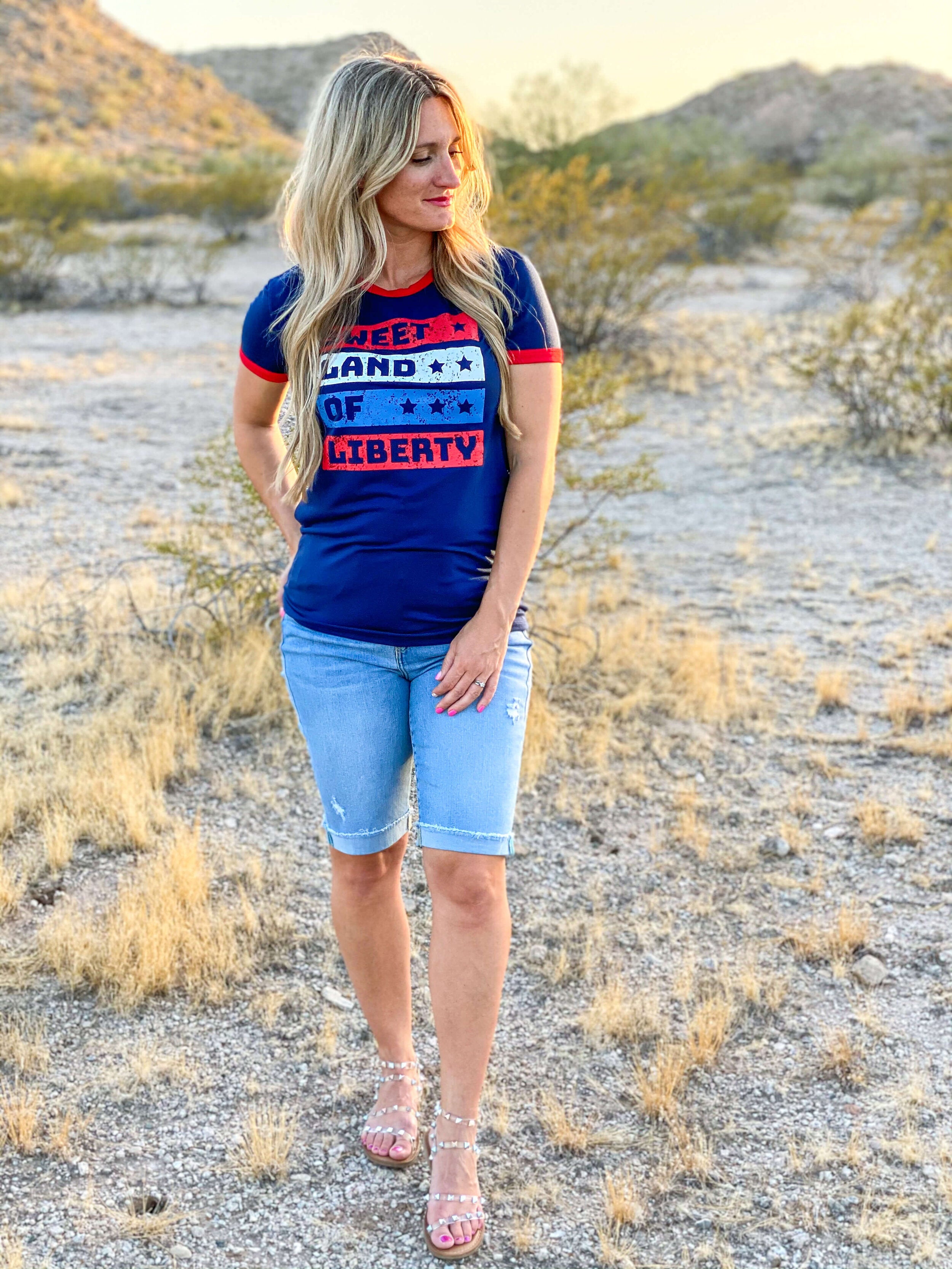 The Liv top has a contrast ribbed neckline and cuff with a relaxed silhouette and a true-to-size fit. She comes in MVS 95/5 poly/span.