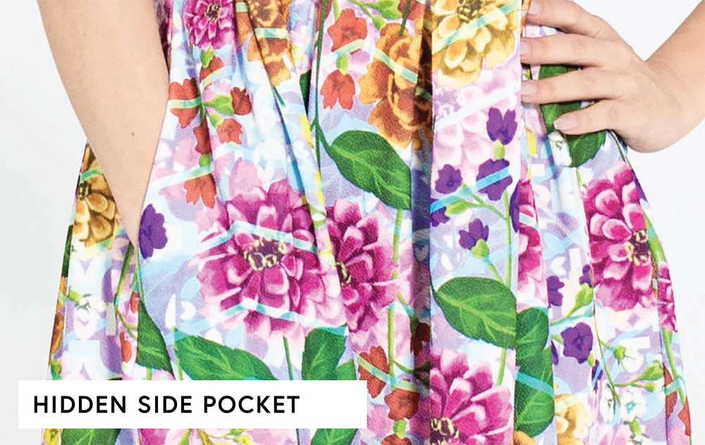 The Amelia dress' stretchy knit fabric is comfortable enough to let you wear the dress all day while having the structure and tailoring that make it sophisticated enough for the office or a fancy night out. The dress features handset box pleats, giving the dress a flowing, full skirt. And before we forget the best part, this dress also has hidden pockets! This dress is everything a girl needs.