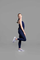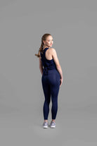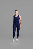 A high waist medium impact fitness tight 7/8 length legging that hits right above the ankle. Slimming stripes at the natural side seams. With an outside hip smartphone pocket and hidden interior waist key pocket.