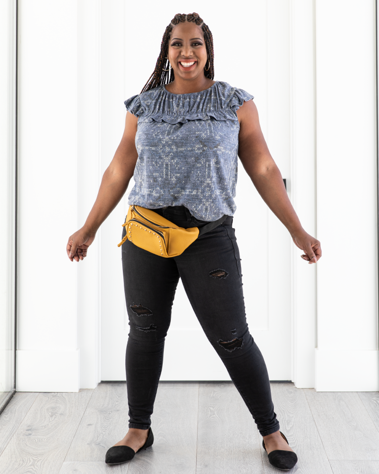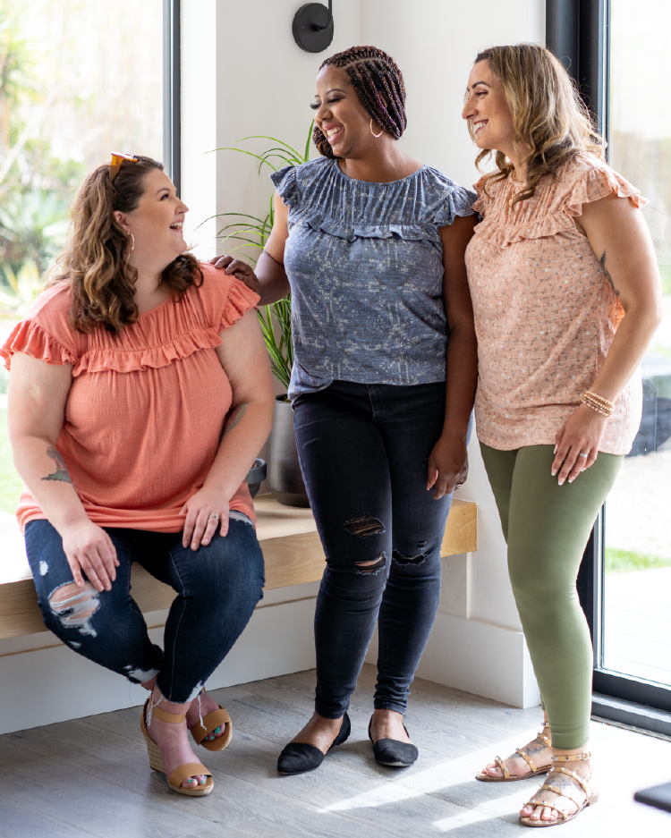 The Details: The Stasha has a high rounded neck with encased elastic, flutter sleeves, and a ruffle chest yoke. She hits at the mid hip and has a relaxed fit. She comes in Crinkle Jersey 66/33/1 Poly/Rayon/Span 220GSM and MVS 95/5 Poly/Span 190GSM Fabric.